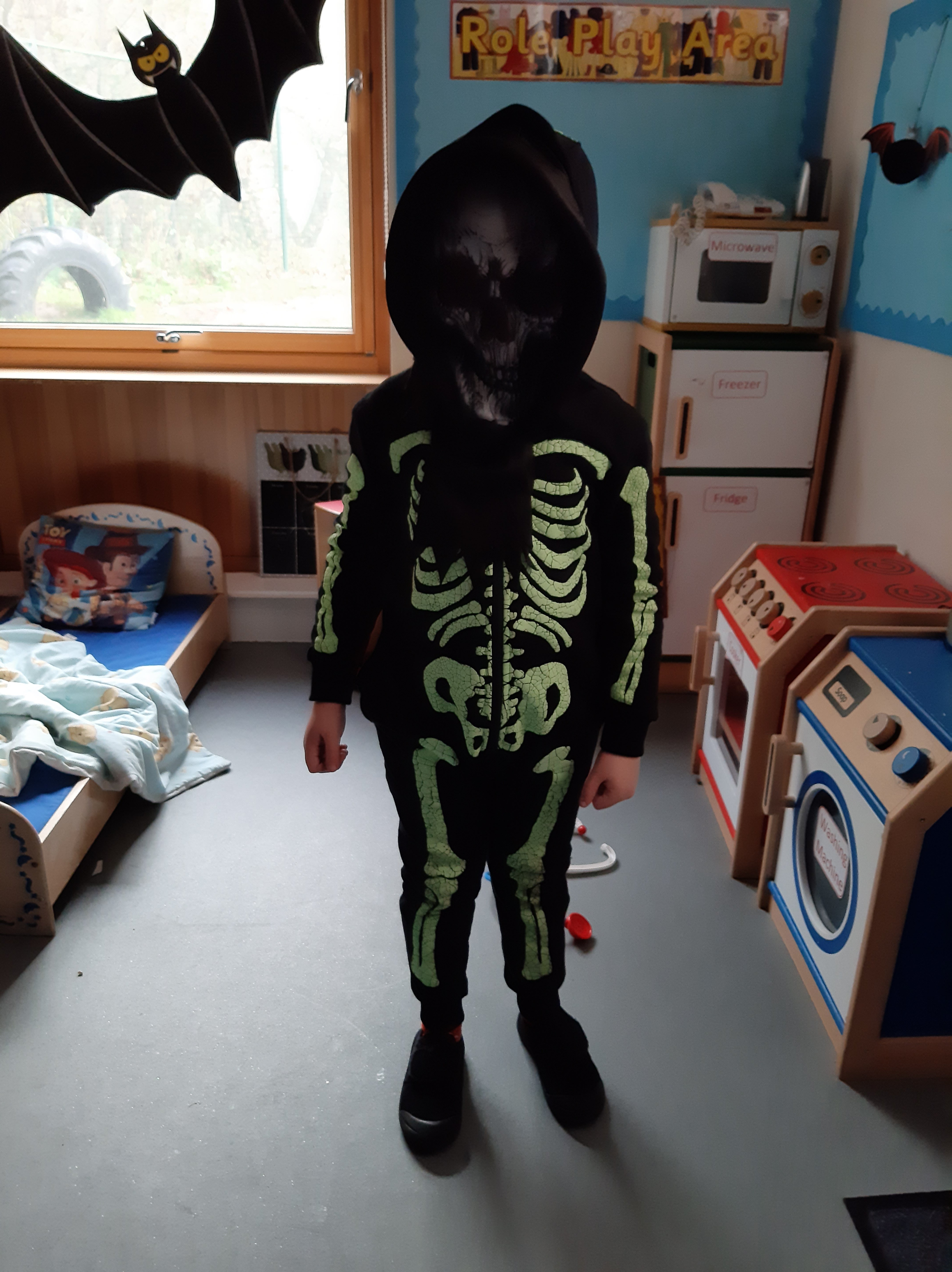 Today in school we had a Super Spooky Day. There were witches, dinosaurs, bats and even Woody from Toy Story was there!