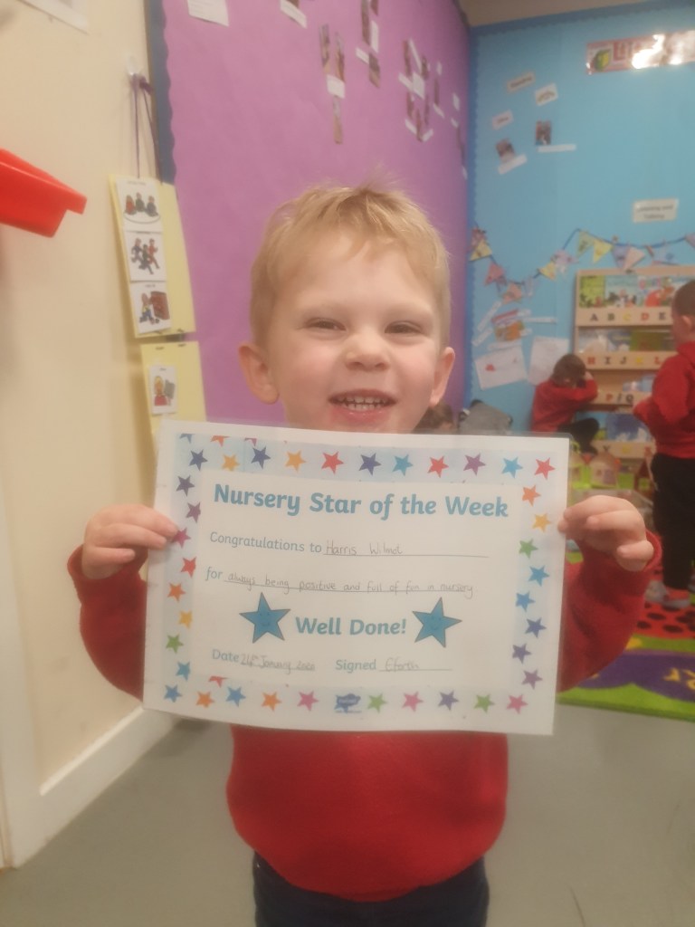 Our first star of the week is Harris Wilmot for always being positive and full of fun in nursery.