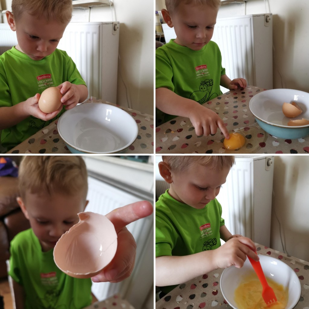Harris cracked his own egg open and it landed on the table but stayed perfect! He said it felt “squishy”. Also keen not to waste his egg he made scrambled egg with his for his lunch, Harris did you know that’s Mrs Forths favourite lunch?