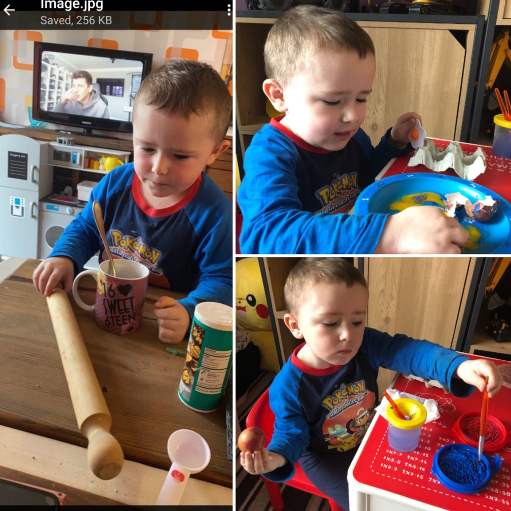 Tristian enjoyed the egg task and his Mum sent us some lovely photos, its great to see your face Tristian, I’m sure your friends will be pleased to see you.