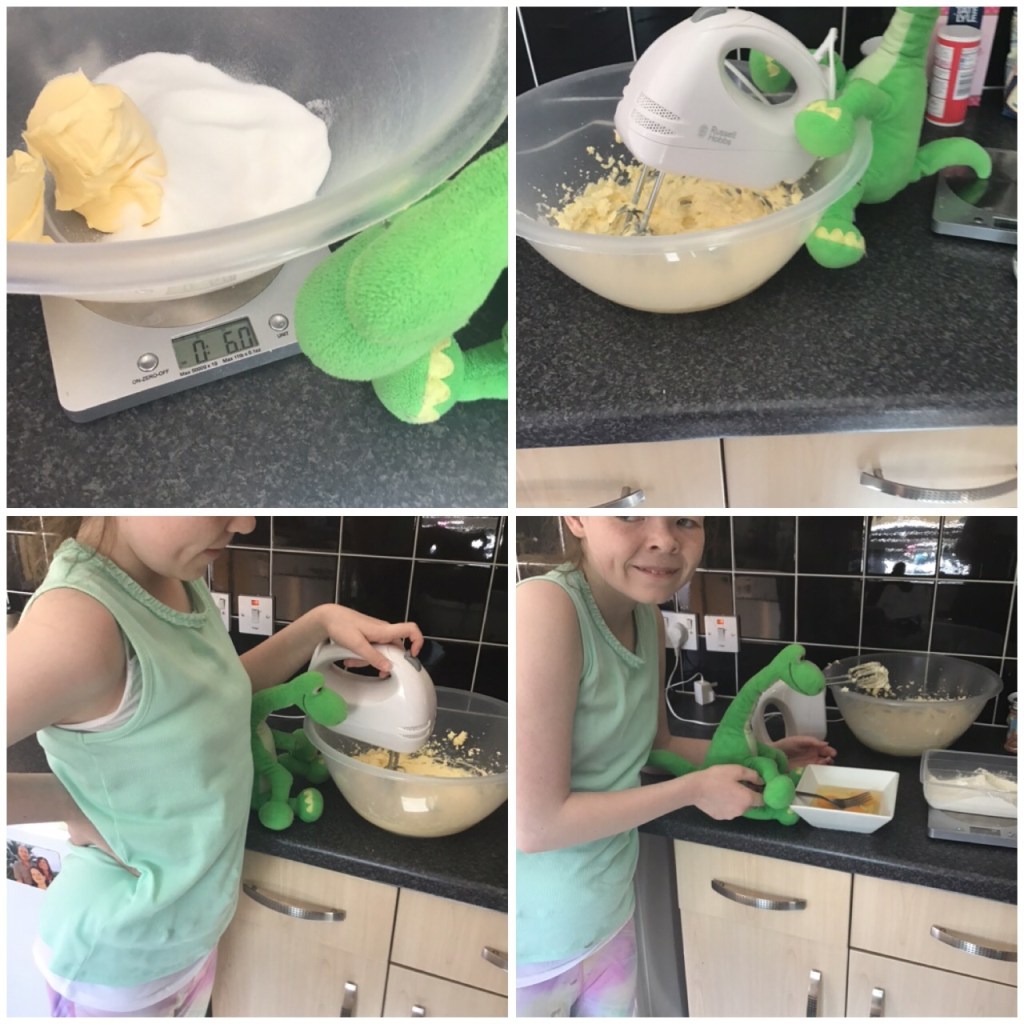After we had counted out the flour and 3 eggs we used the electric whisk to make it all light and fluffy. Remember boys and girls the whisks need electricity to work and we do not go near this only parents electricity can be Dangerous.