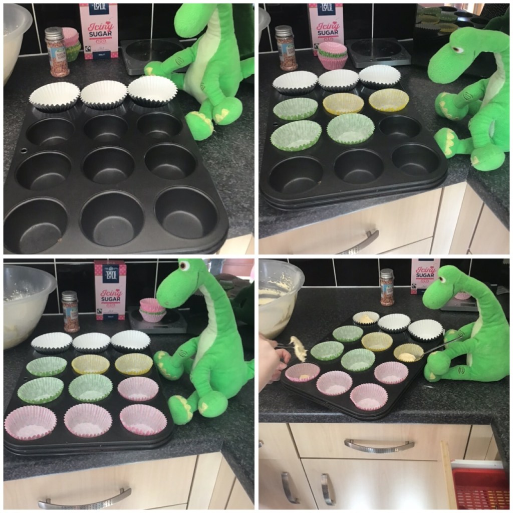 Then we had to count out our cake cases we counted 12, we used a spoon to put the mixture in.