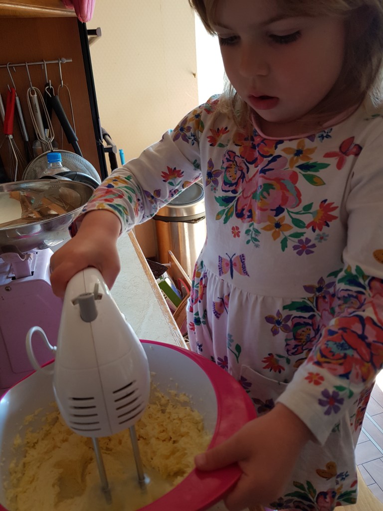 Amy and her mummy were very busy making some amazing looking cakes Amy was using the whisk to beat the mixture, then she carefully counted out the cake cases for the yummy cakes. You decorated them beautifully Amy and mum. Then Amy and Zoe got all their dollies and Teddies ready for the picnic.