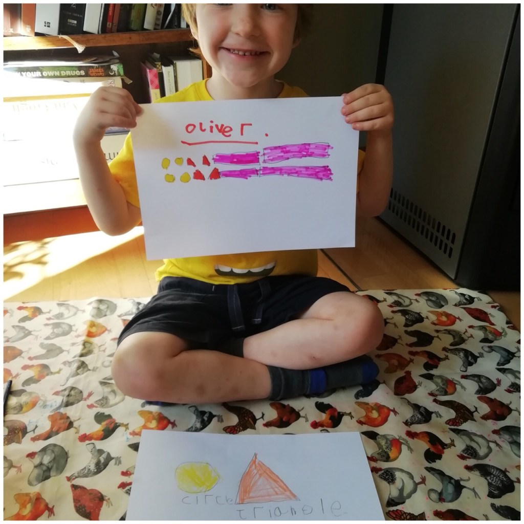 Ollie also joined in today which was lovely good to see you enjoying the task also Ollie. Do you notice something with a pattern around about Oliver? I think he picked it especially to show us all the lovely pattern .