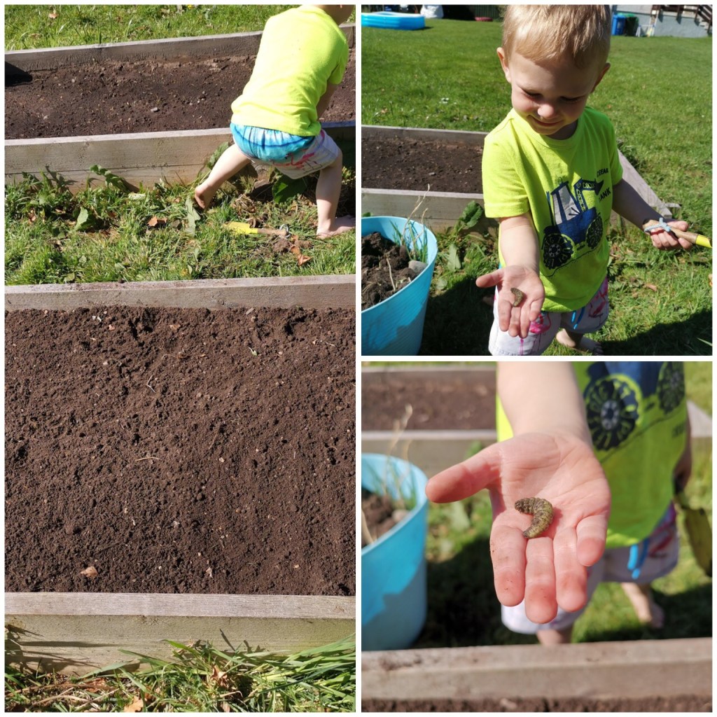 Harris also enjoyed his time in the vegetable patch it looks like you nearly fell in Harris😁 whilst he was there he found a really good sign of the Season – we are in Spring now girls and boys.