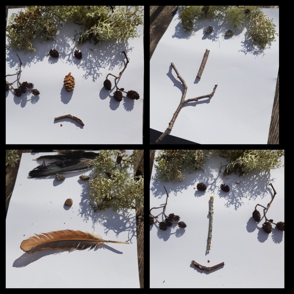 First we are going to make funny faces on our paper with the loose parts, be creative and make different expressions, happy, excited, worried etc. Use lots of different materials from around the house too.