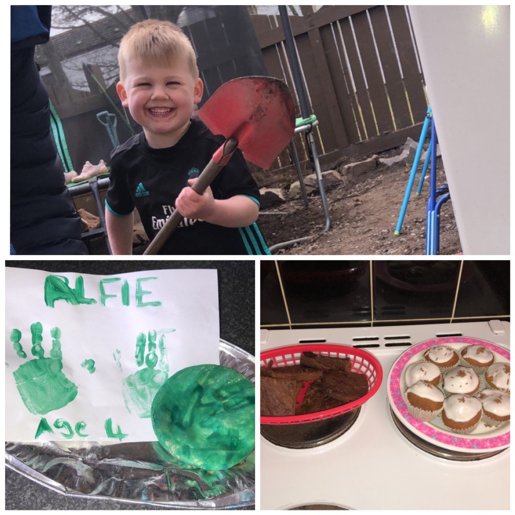 It was lovely to hear from Alfie this morning, he has been busy helping in the garden, baking cakes and making salt dough hand prints. Well done Alfie!