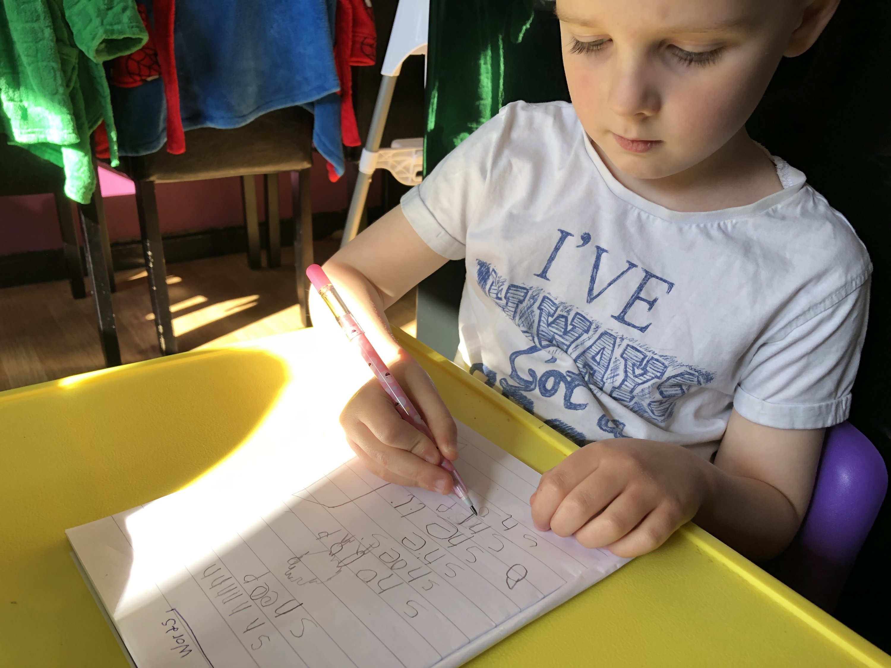 Harris has been enjoying helping his sister out with her primary 1 tasks. Good job Harris.