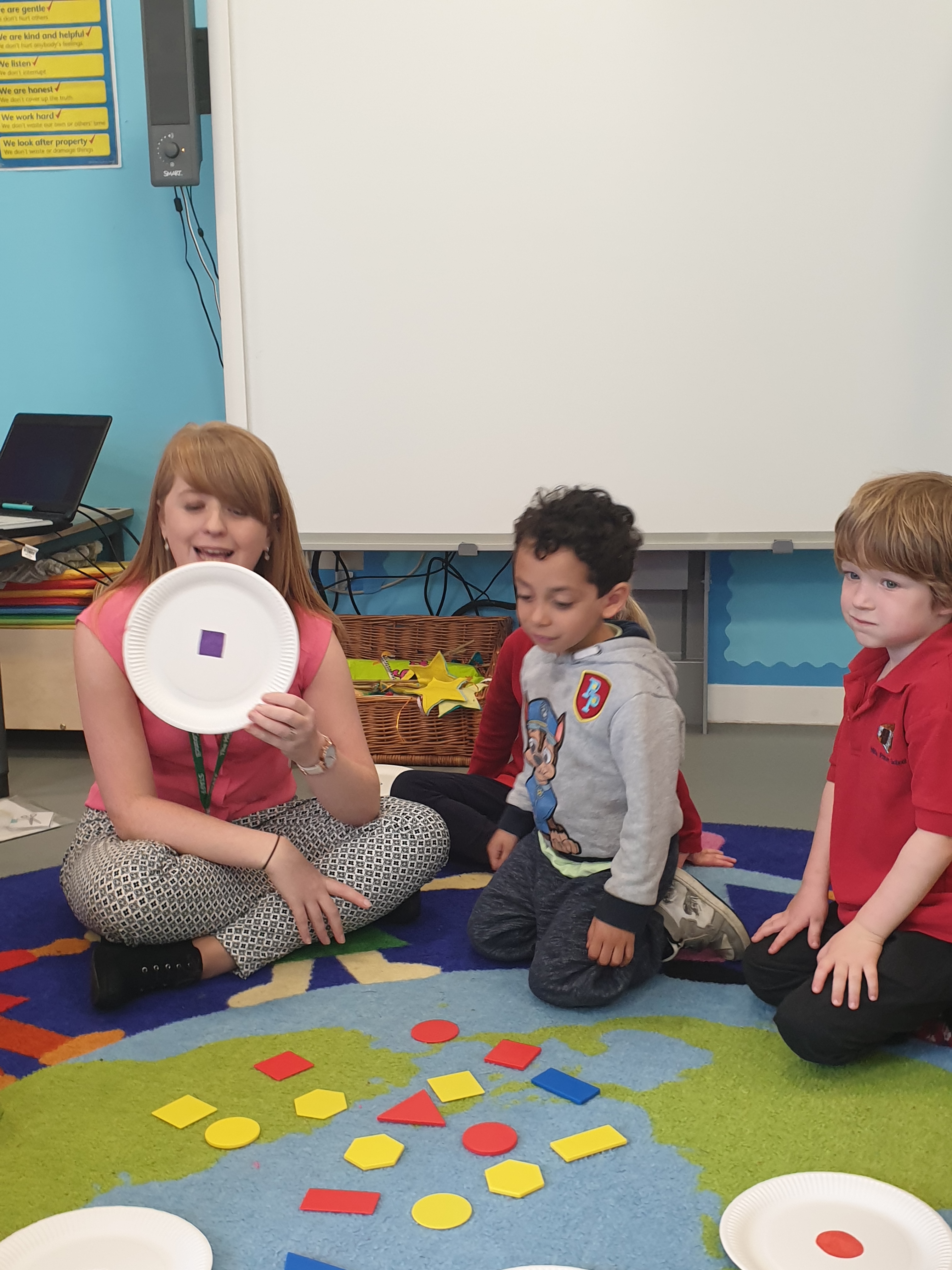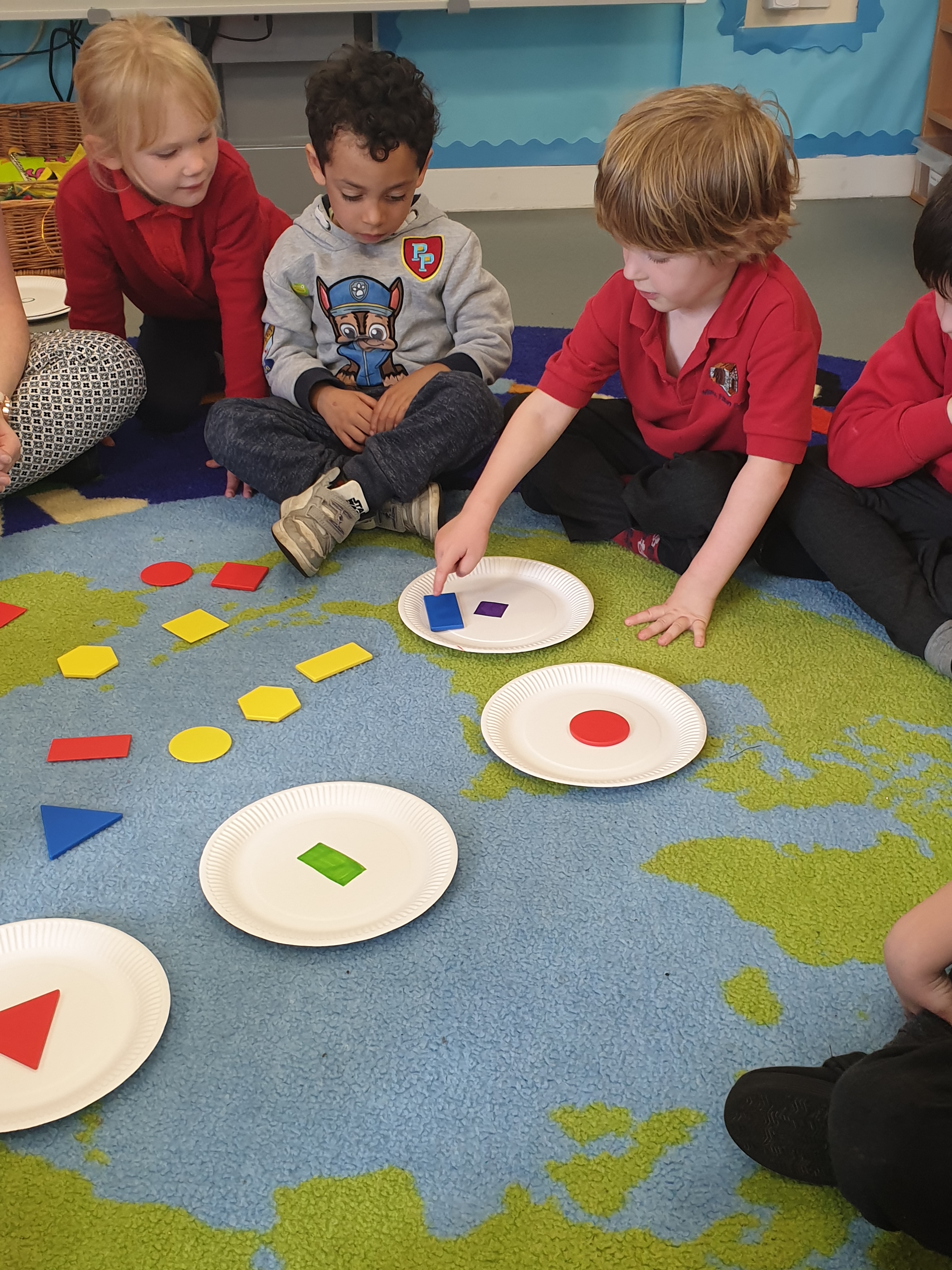 This afternoon we had a fantastic shapes lesson. First we all sat together and had to fish out the correct shapes from the middle of our circle. There was lots of discussion about what each shape looked like.We then had to try and pick out a certain shape and match it to the correct picture. Some of the children then went on to sort the shapes by the amount of sides they have.