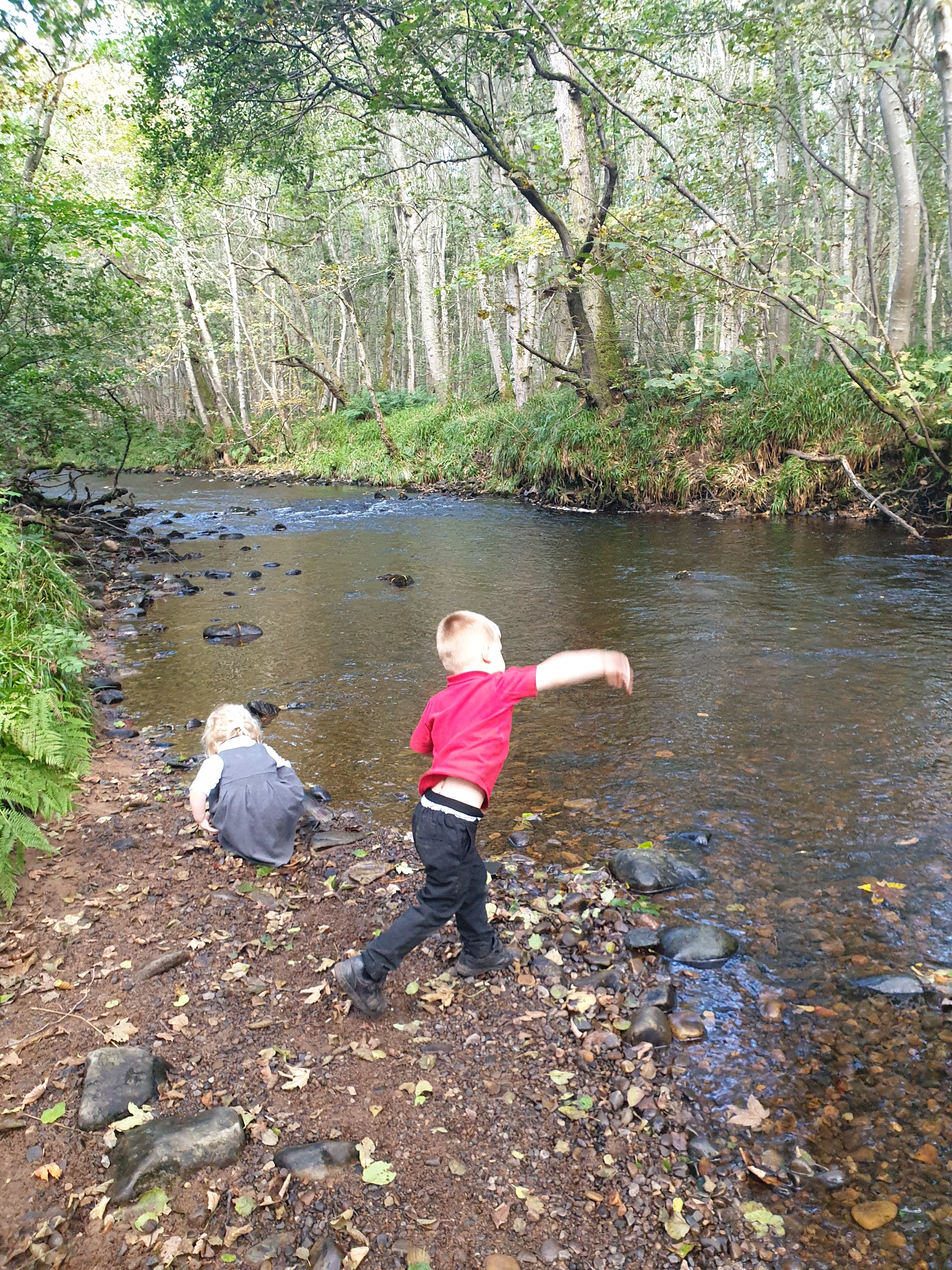 As we got further along the river we found a nice shaded spot to talk about safety near water. We know we dont go near the water without an adult and must never go in fast moving water. After we talked about keeping safe we got to throw some stones into the water before walking back to the school.